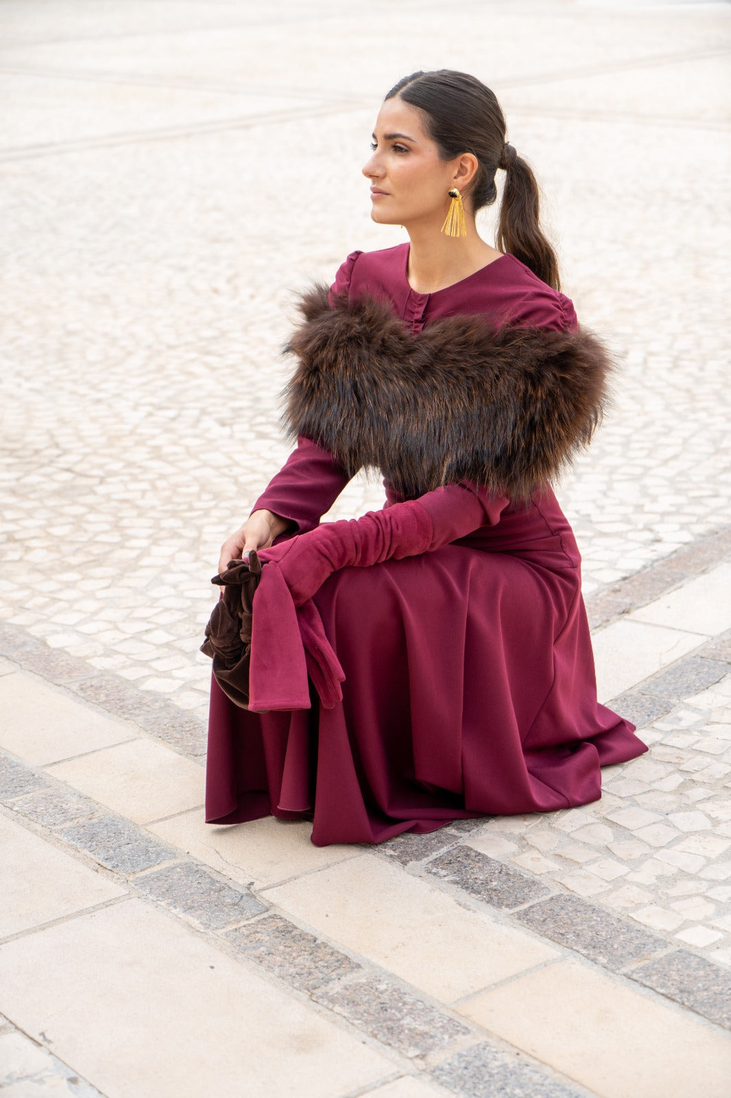 Estola pelo natural, redonda, elástica, para cubrir los brazos. En color marrón.
