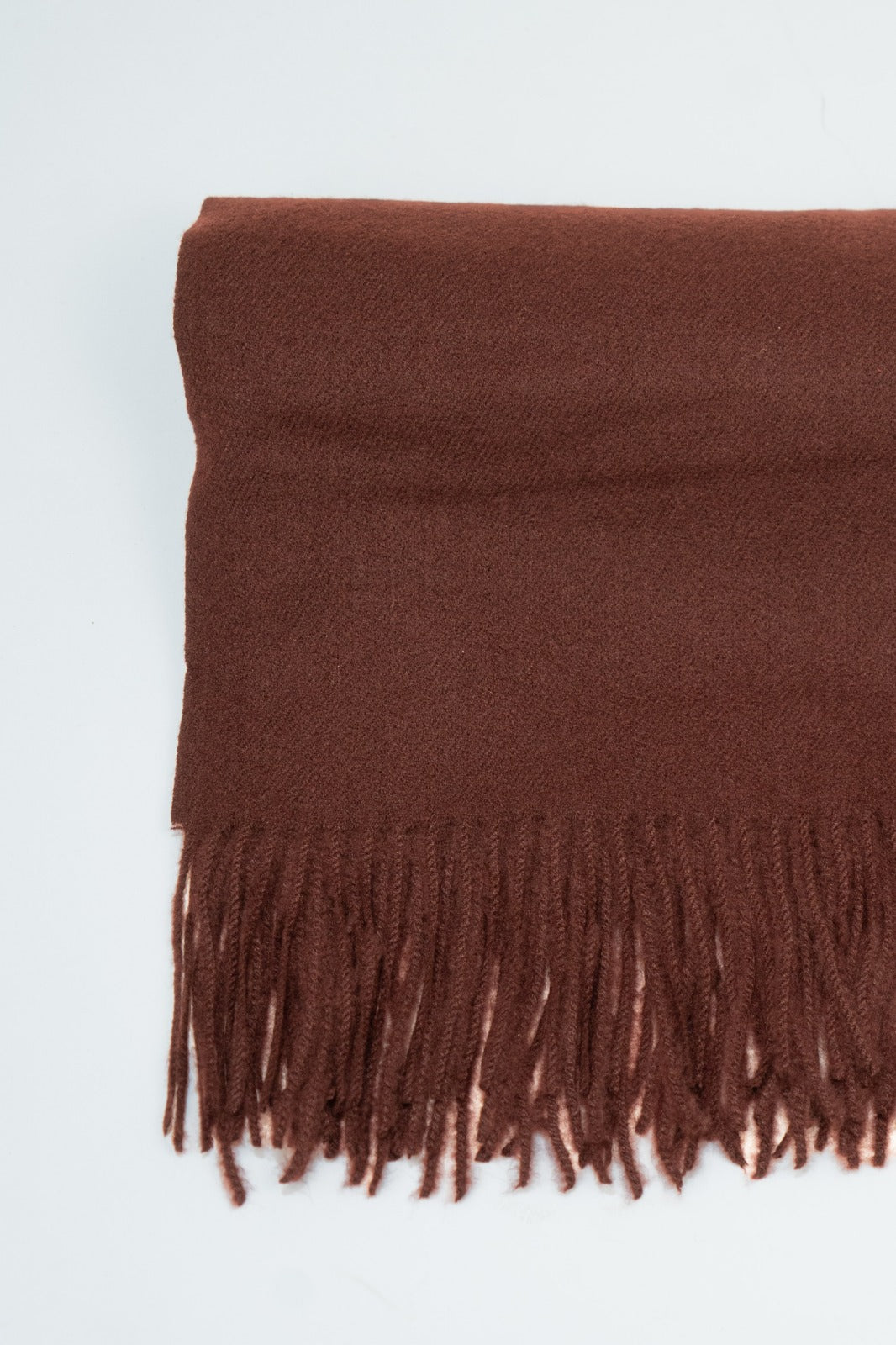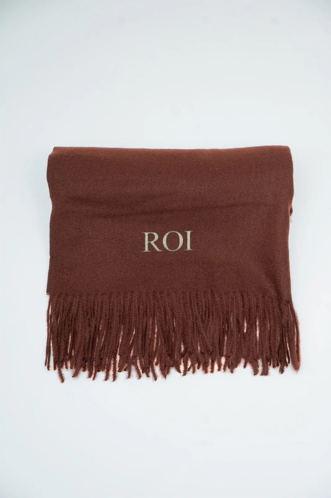 Bufanda suave, flecos en las terminaciones en color marrón. Producto personalizable.