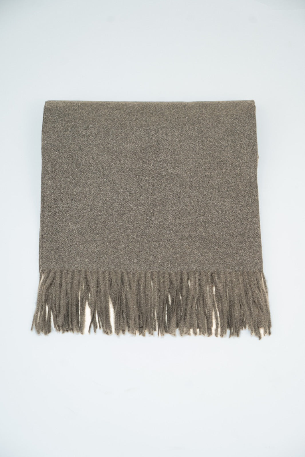 Bufanda suave, flecos en las terminaciones en color gris. Producto personalizable.