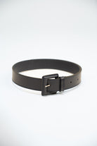 Cinturón confeccionado en piel color marino. Cierre delantero con hebilla forrada en piel.