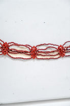 Choker formado por hileras con detalles de piedras, en color burdeos.