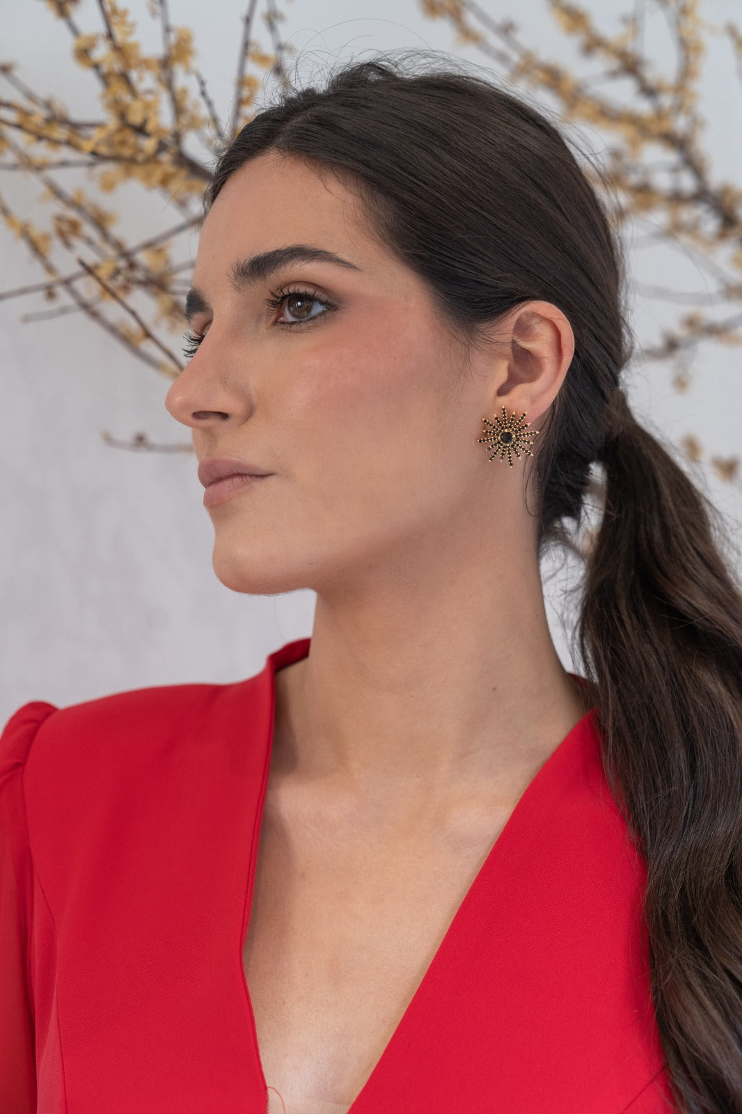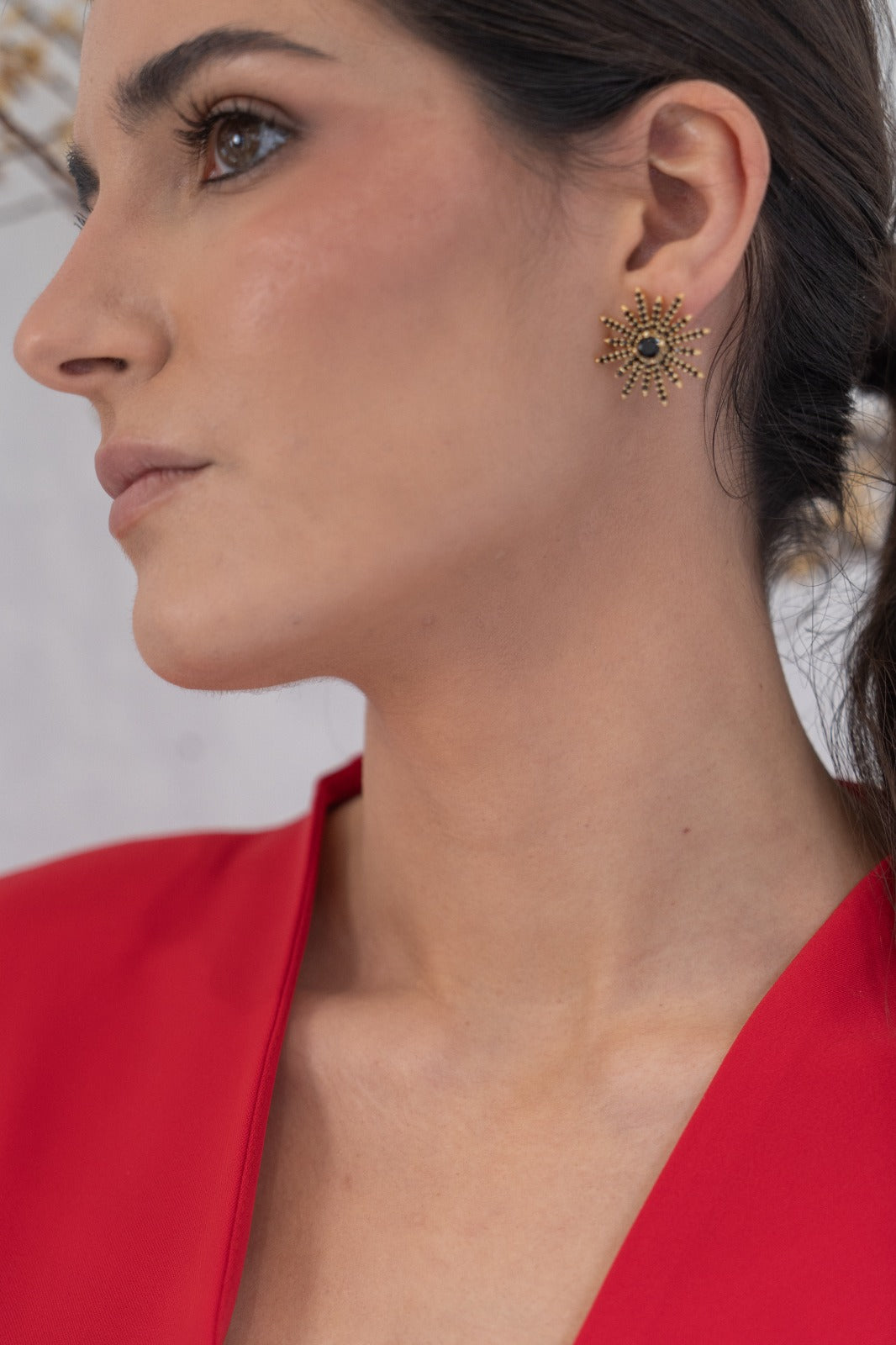 - Material: Latón bañado en dorado con circonitas.