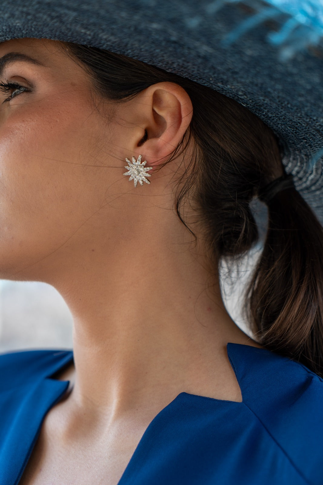 - Material: Latón bañado en plata con circonitas.