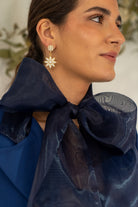 Pendiente doble estrella, una más pequeña en la parte superior y otra de mayor tamaño en la inferior, las estrellas están cuidadosamente engastada con circonitas.