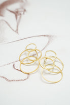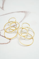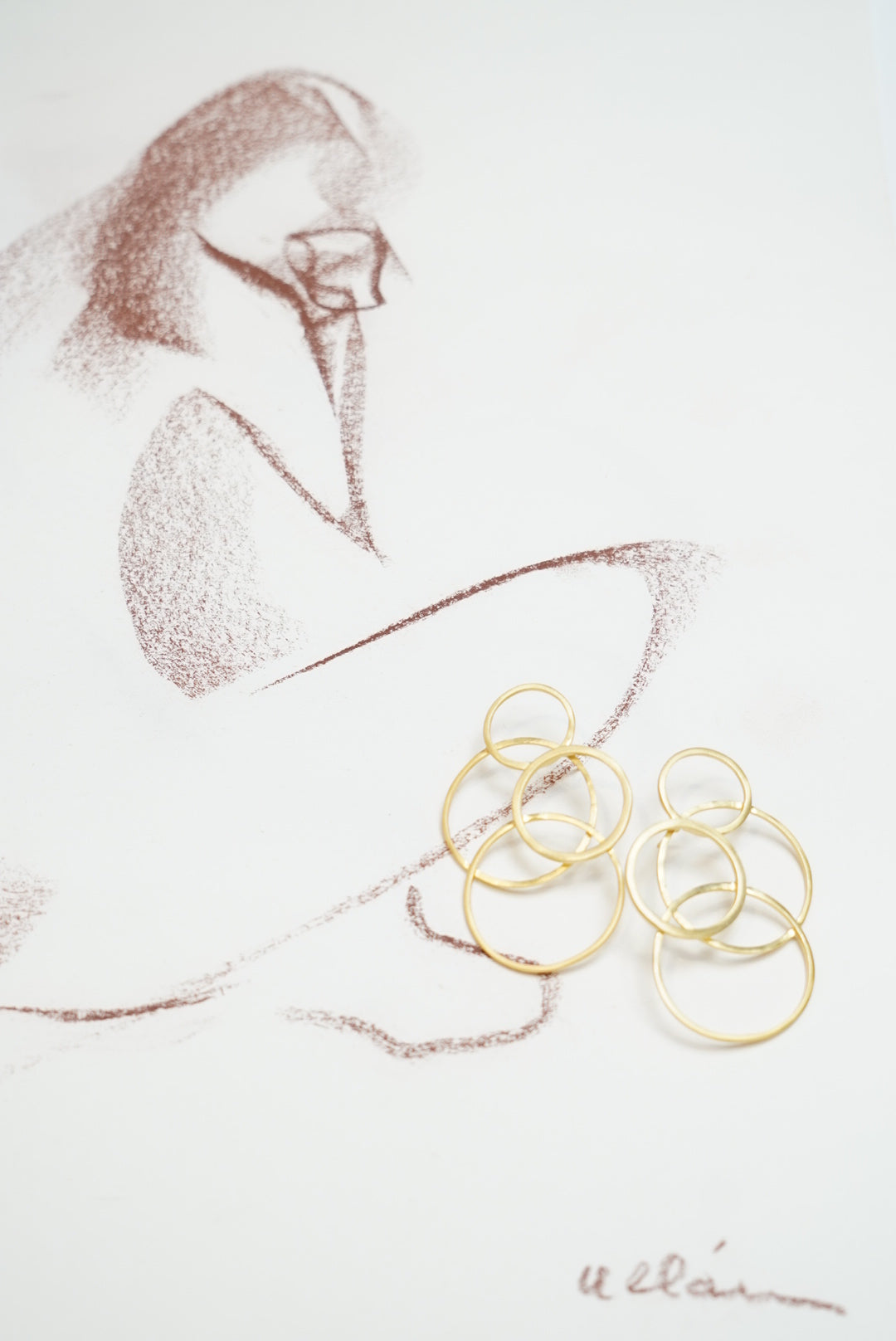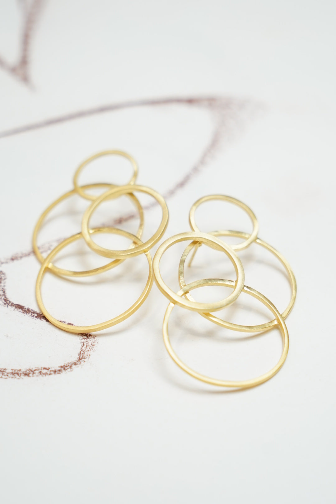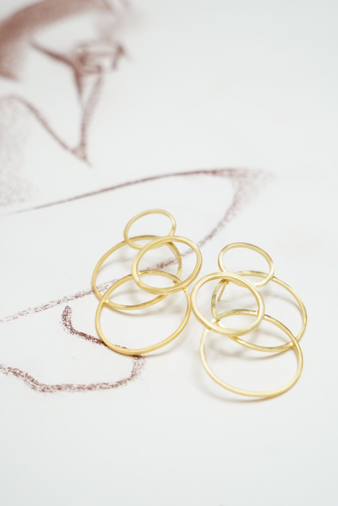Pendientes dorados formados por varias circunferencias. Pendientes realizados artesanalmente.