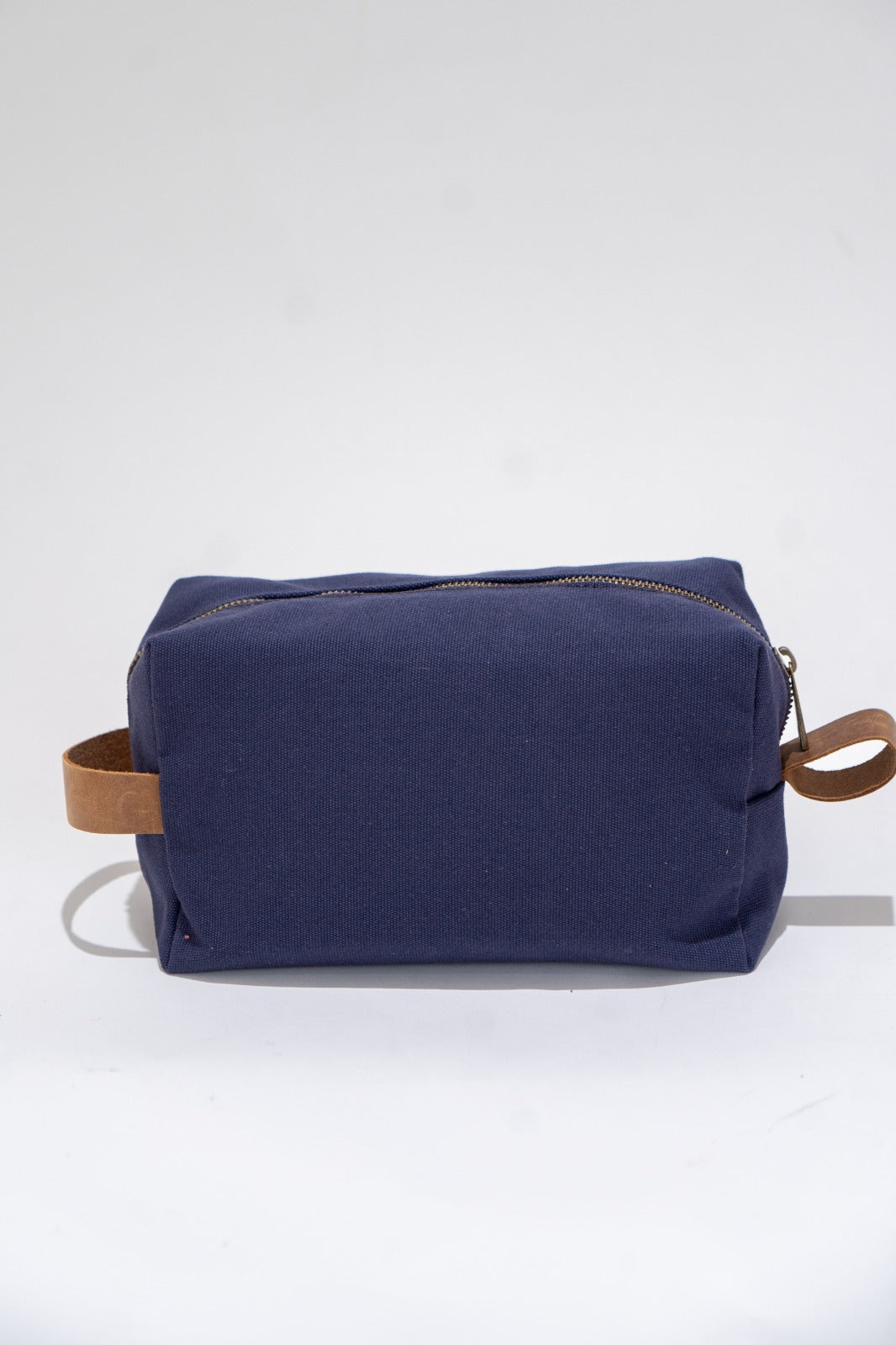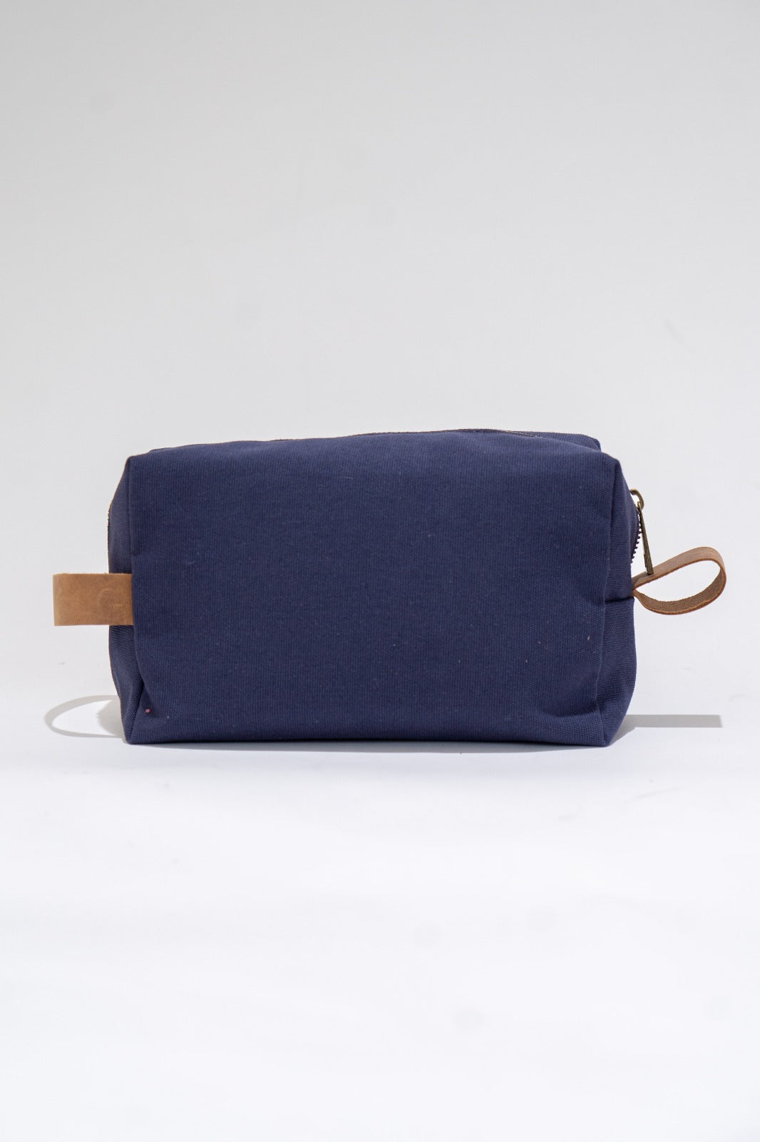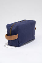 Bolsa de aseo, neceser rectangular, cierre con cremallera, asa a los lados, en color azul.