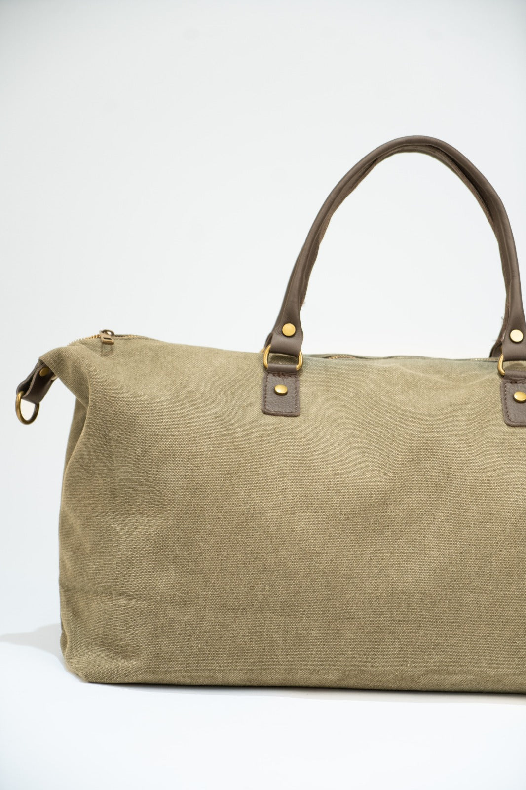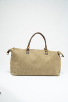 Bolso, maleta en loneta, con asas fijas en piel y correa extraíble y ajustable de algodón en color marrón chocolate. Cierre con cremallera, forro interior en negro y bolsillo interior. En color marrón.