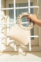 Bolso con asa redonda rizada, forrado en seda natural, en color champange.