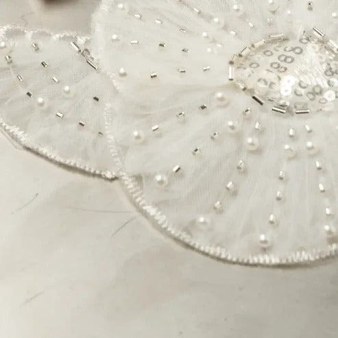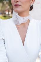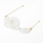 Choker con pétalos circulares, perfectamente bordados. El diseño, limpio y contemporáneo, combina la delicadeza del bordado con una estructura visual poderosa, creando una pieza de personalidad serena.